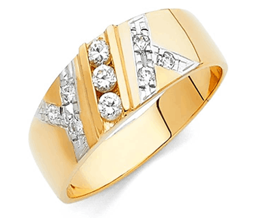 14K Two Tone Women's Round CZ Wedding